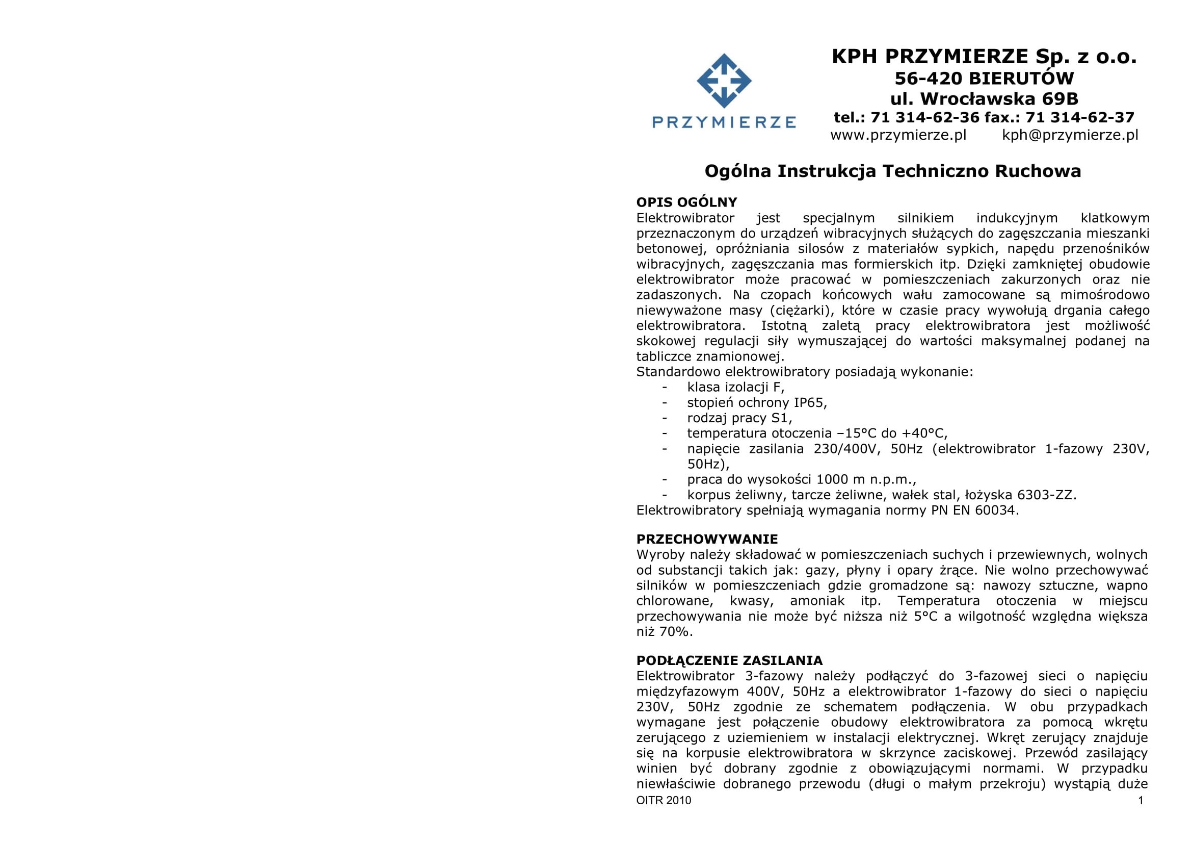 PRZYMIERZE - ELEKTROWIBRATOR - Ogólna Instrukcja Techniczno Ruchowa